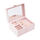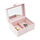 Smykkeskrinet åbnes med en trykknap og har et stort spejl i låget, der gør det nemt at vælge og tage smykker på. Indvendigt har den en indsats, der indeholder fire mindre rum, et større rum til kæder, så de ikke filtrer sammen, samt ni rum dedikeret til fingerringe. Når indsatsen fjernes, afsløres et ekstra opbevaringsrum med plads til to ure, så dine personlige smykker altid er organiserede.